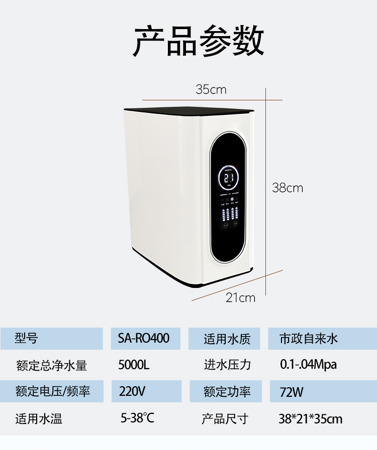 產(chǎn)品名稱規(guī)格:SA-RO400(帶TDS顯示)