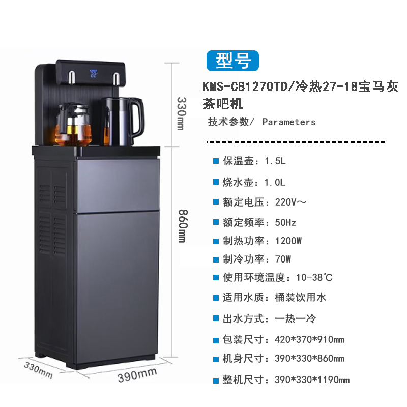 產(chǎn)品名稱規(guī)格:KMS-CB1270TD/冷熱27-18寶馬灰 茶吧機(jī)